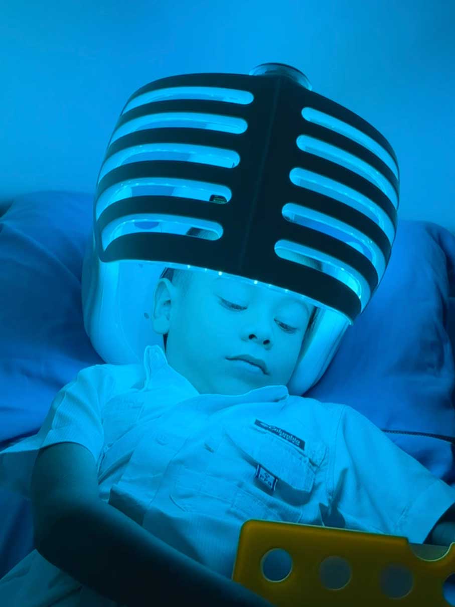 Es una innovadora tecnología sensorial, la estructura en forma de casco es capaz de activar simultáneamente la vista, audición y olfato, es decir es multisensorial, Posee terapia musical para escuchar “FRECUENCIAS MUSICALES BINAURALES” trabajando en el proceso de maduración del cerebro